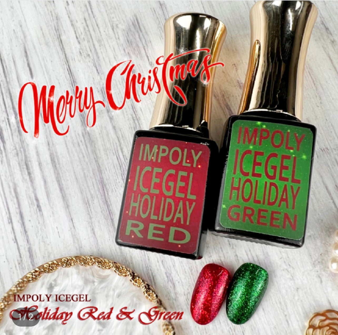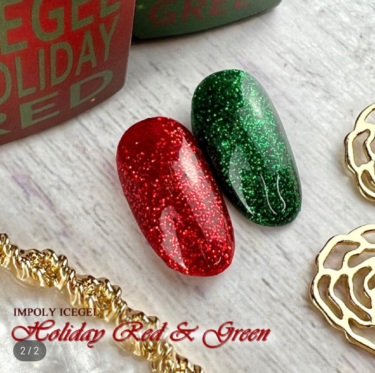 Add some holiday magic with this red and green glitter duo! Festive, fun, and totally eye-catching. Perfect for the holiday season.