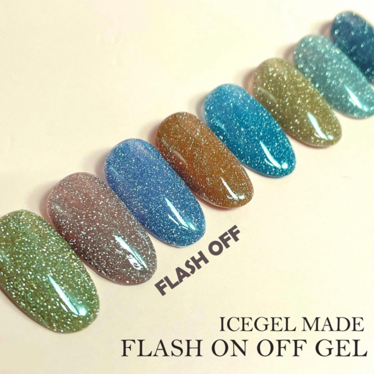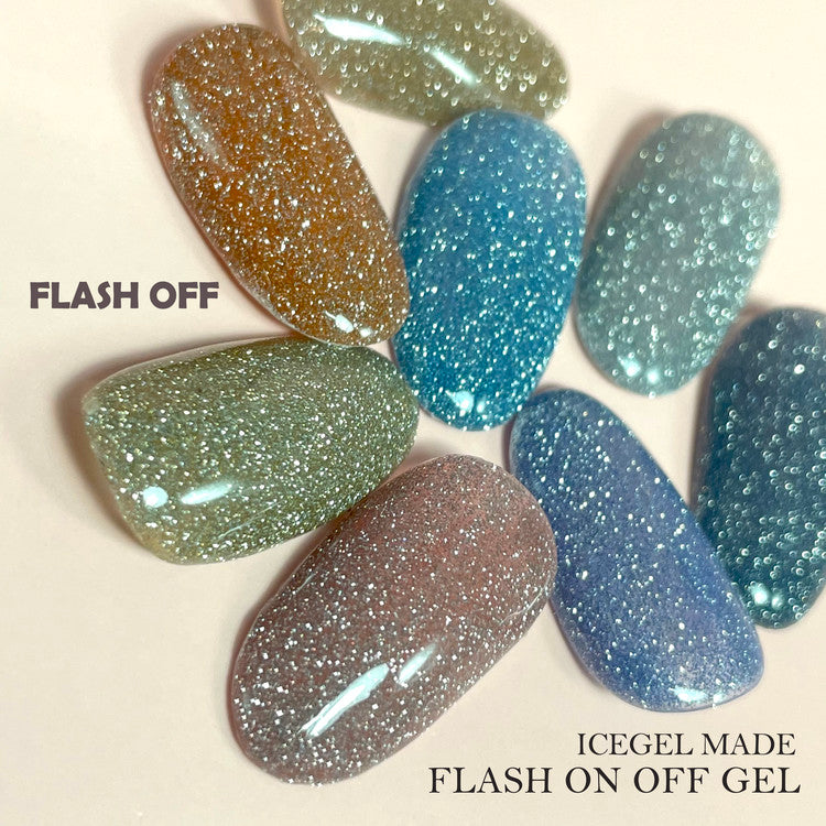 Glows super shiny under flash light - Light On.It will have super luxurious looks on your nails when the light off.