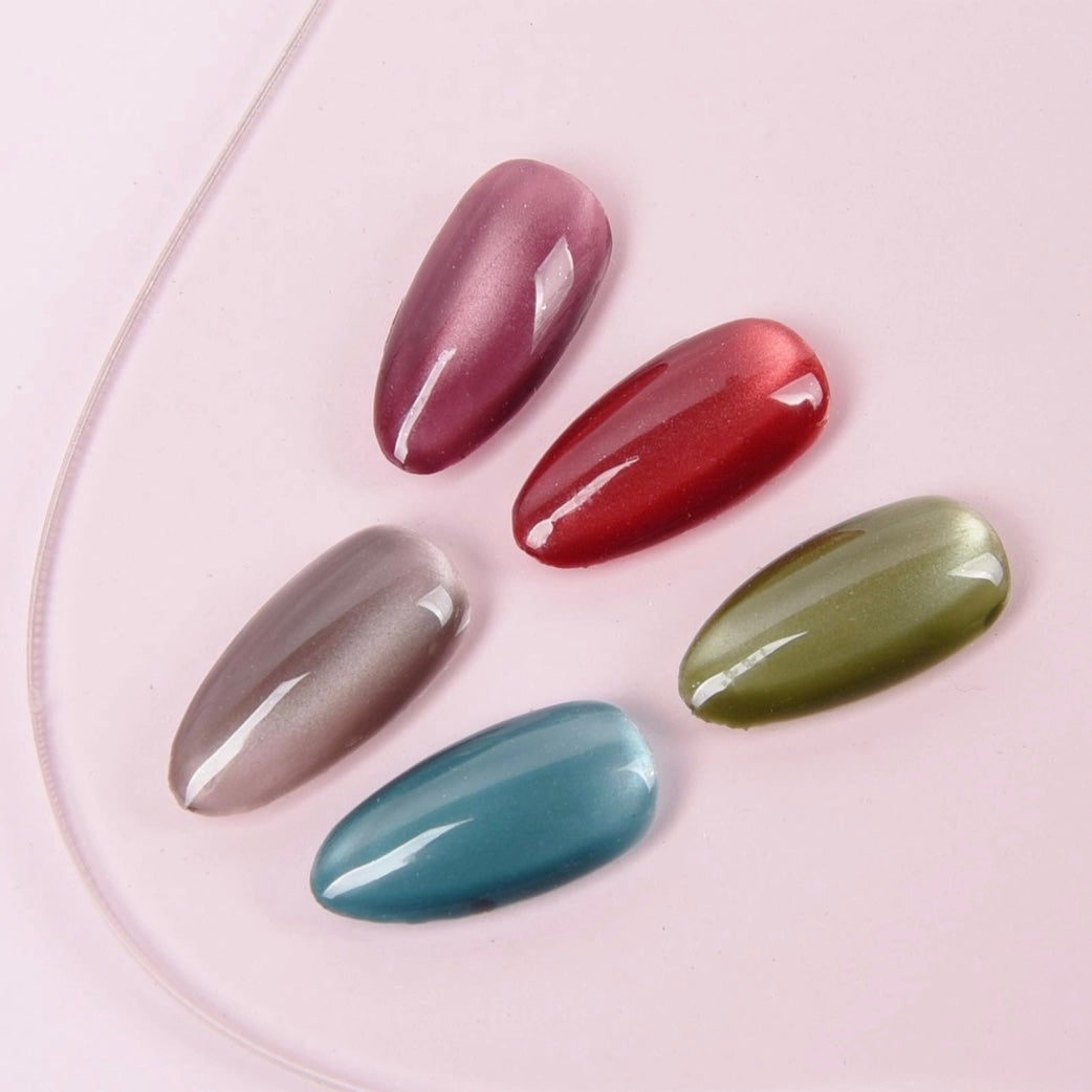 Elevate your nail art with the luxurious Velvet Mist Star Galaxy collection. Inspired by the shimmer of stardust, this collection offers five mesmerizing shades—Mystic Plum, Crimson Flux, Titanium Silver, Emerald Depths, and Azure Mystery. The secret to its enchanting allure lies in the champagne gold base, which creates a velvet-like finish that sparkles like sun-kissed sands. Each color in the collection is designed to capture light beautifully, giving your nails an elegant and sophisticated glow.